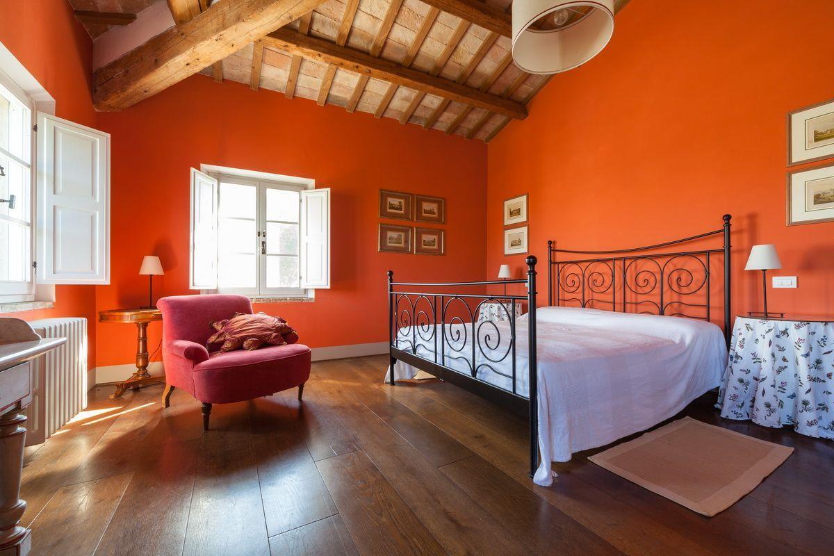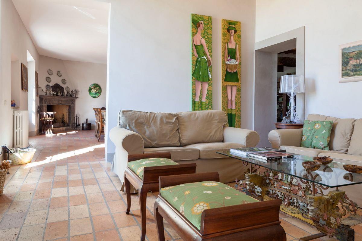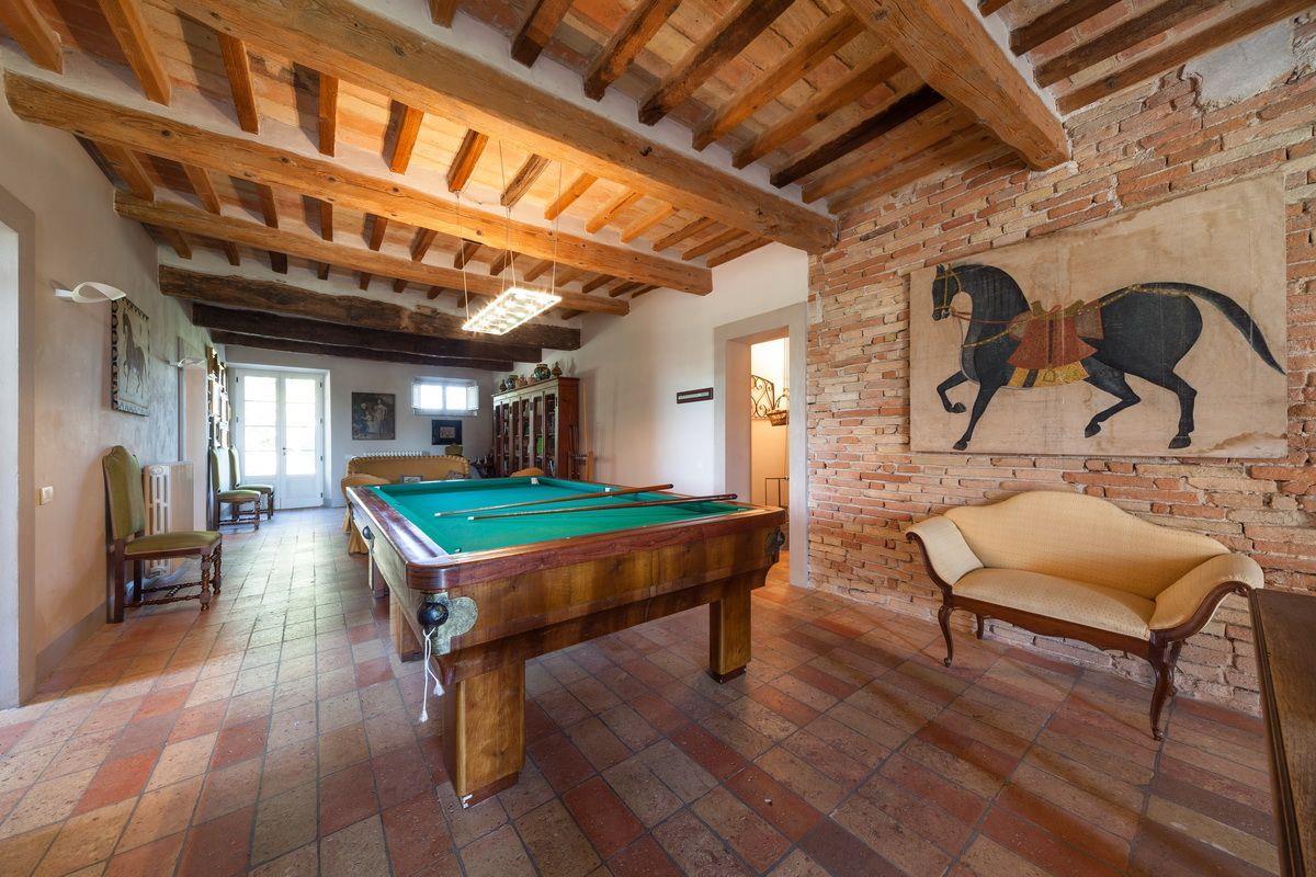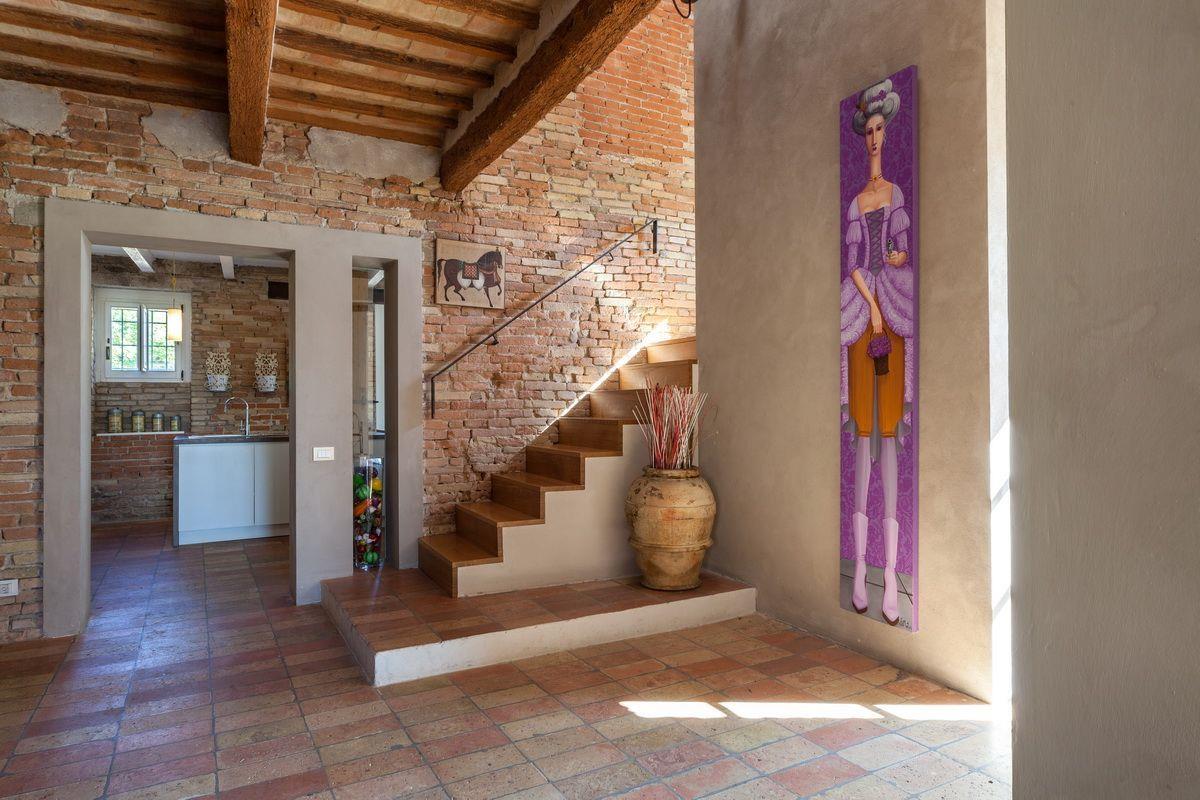 Старинное загородное имение располагается в холмистой местности региона Марке, всего в 20 км от моря. Недвижимость включает хозяйскую виллу, два флигеля и пристройку, окружённые частным земельным участком около 3 га с садом, бассейном и оливковой рощей.