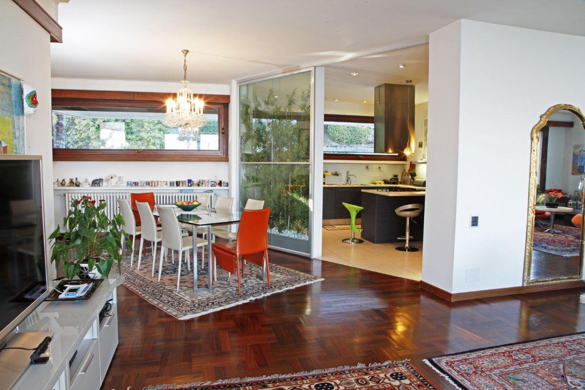 На первом уровне виллы находятся: большая гостиная с высокими окнами в пол и панорамным впечатляющим видом на озеро Лаго-Маджоре, камин, столовая, кухня, ванная комната.