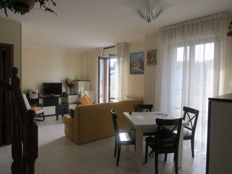 В Тробазо Вербании продаётся большая двухуровневая трехкомнатная квартира на первом этаже. Она состоит из прихожей, кухни и гостиной, в обеих комнатах есть окна с выходом на балкон.
