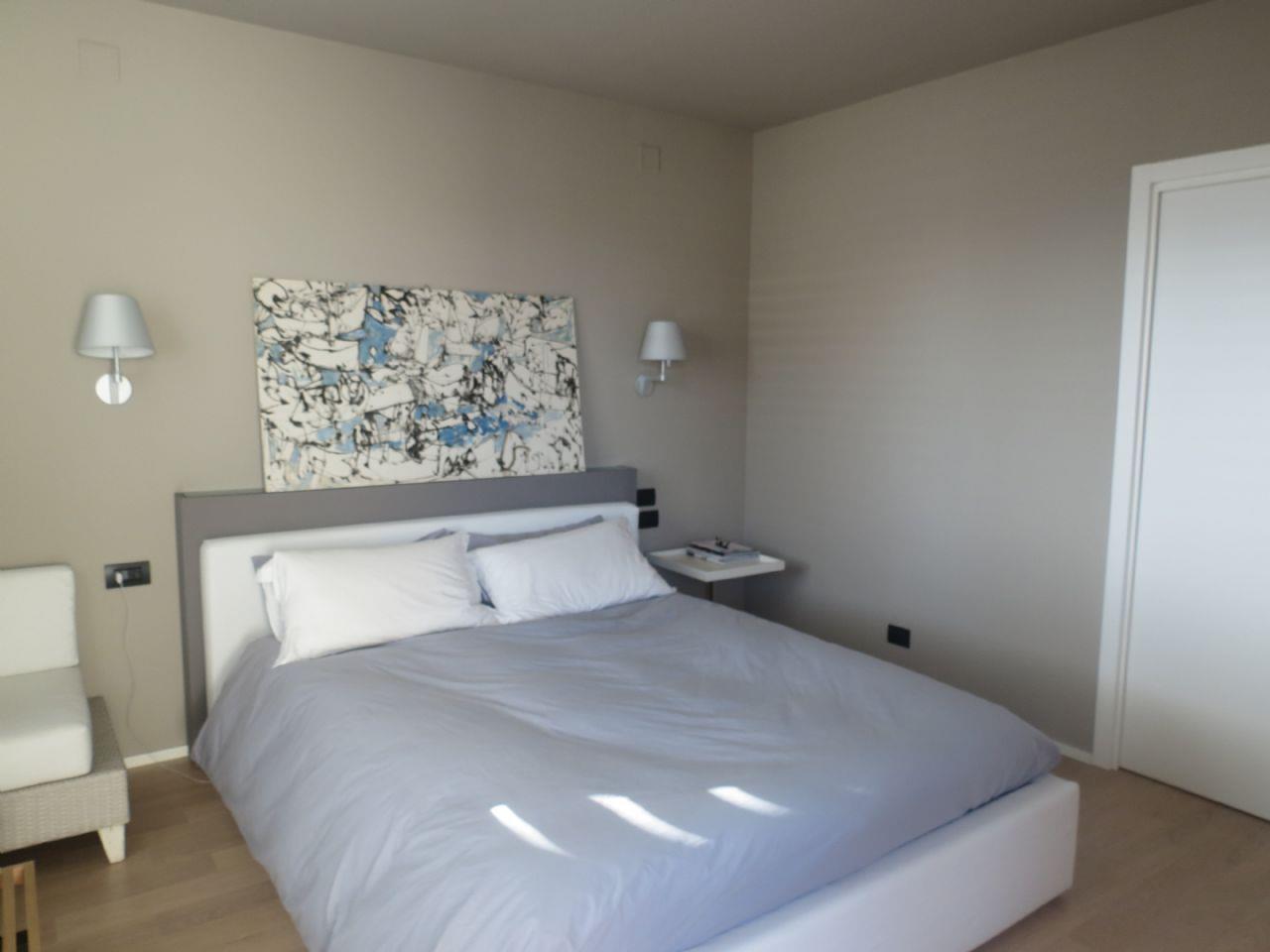 Апартаменты площадью 133,86 кв.м. состоят из большой гостиной, кухни открытой планировки с выходом на террасу площадью 32,84 кв.м., прихожей, подсобного помещения, спальни с двуспальной кроватью, гардеробной, другой прихожей, 2 одноместных спален, двух ванных комнат — одна с душем и одна с ванной.